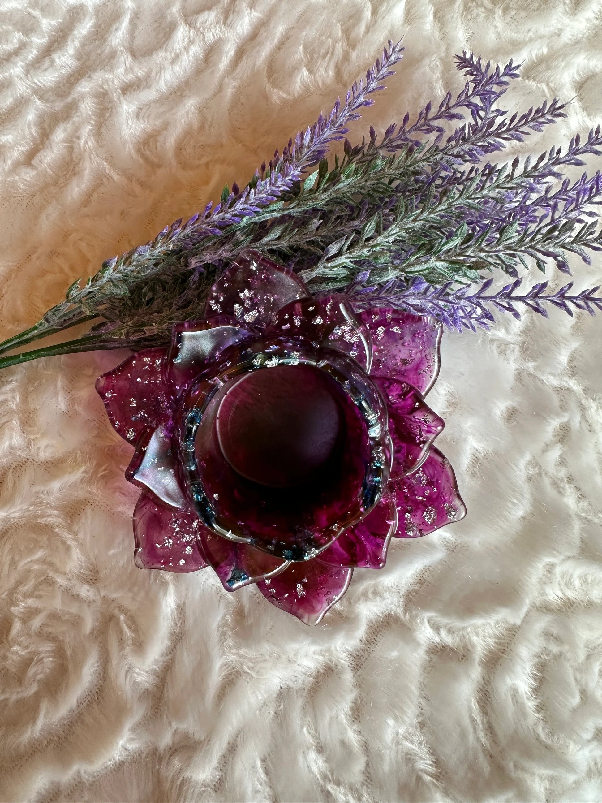 Dieser wunderbar verspielte Teelicht- & Kerzenhalter aus hochwertigem Epoxidharz bringt leuchtende Magie in jedes Zuhause. Mit seinem einzigartigen Design und der glänzenden Oberfläche wird er zum echten Blickfang auf dem Tisch, der Fensterbank oder dem Regal. Das Beste: Deine Bestellung kommt bereits mit einem Teelicht – sofort einsatzbereit für gemütliche Stunden. Perfekt zum Verschenken oder zum Verwöhnen deiner eigenen vier Wände!