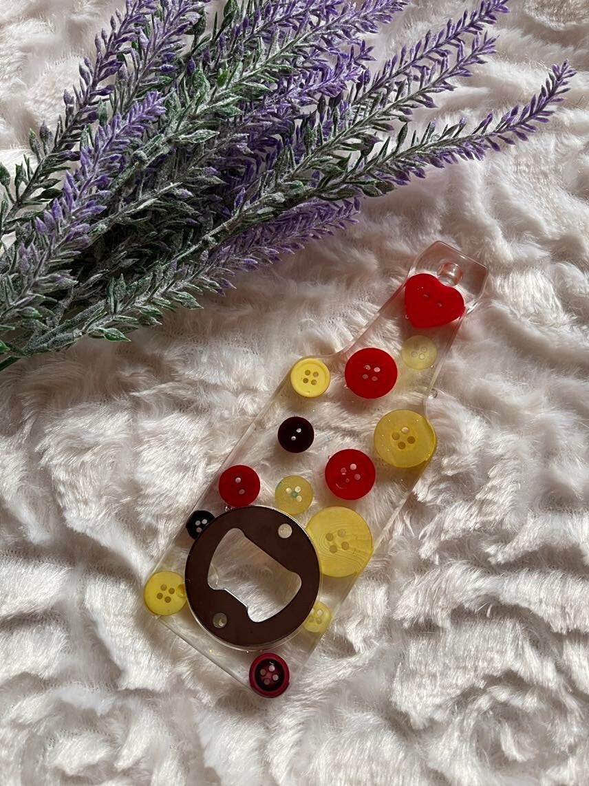 Dieser stylische Flaschenöffner vereint Funktionalität mit künstlerischem Flair! Die robuste Metallplatte öffnet deine Flasche mühelos, während das glänzende Epoxidharz-Design jedem Getränk eine besondere Note verleiht. Perfekt für diejenigen, die auch beim Öffnen ihrer Lieblingsflasche Wert auf Stil legen. Ein praktischer Begleiter für jeden Anlass – ob beim gemütlichen Feierabend oder bei der nächsten Party mit Freunden.