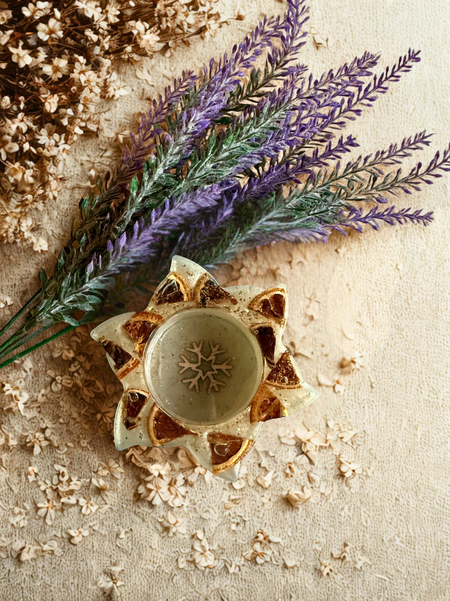 Dieser wunderbar verspielte Teelicht- & Kerzenhalter aus hochwertigem Epoxidharz bringt leuchtende Magie in jedes Zuhause. Mit seinem einzigartigen Design und der glänzenden Oberfläche wird er zum echten Blickfang auf dem Tisch, der Fensterbank oder dem Regal. Das Beste: Deine Bestellung kommt bereits mit einem Teelicht – sofort einsatzbereit für gemütliche Stunden. Perfekt zum Verschenken oder zum Verwöhnen deiner eigenen vier Wände!