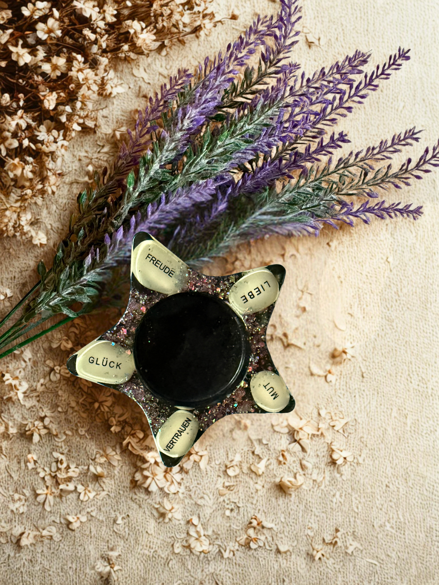 Dieser wunderbar verspielte Teelicht- & Kerzenhalter aus hochwertigem Epoxidharz bringt leuchtende Magie in jedes Zuhause. Mit seinem einzigartigen Design und der glänzenden Oberfläche wird er zum echten Blickfang auf dem Tisch, der Fensterbank oder dem Regal. Das Beste: Deine Bestellung kommt bereits mit einem Teelicht – sofort einsatzbereit für gemütliche Stunden. Perfekt zum Verschenken oder zum Verwöhnen deiner eigenen vier Wände!