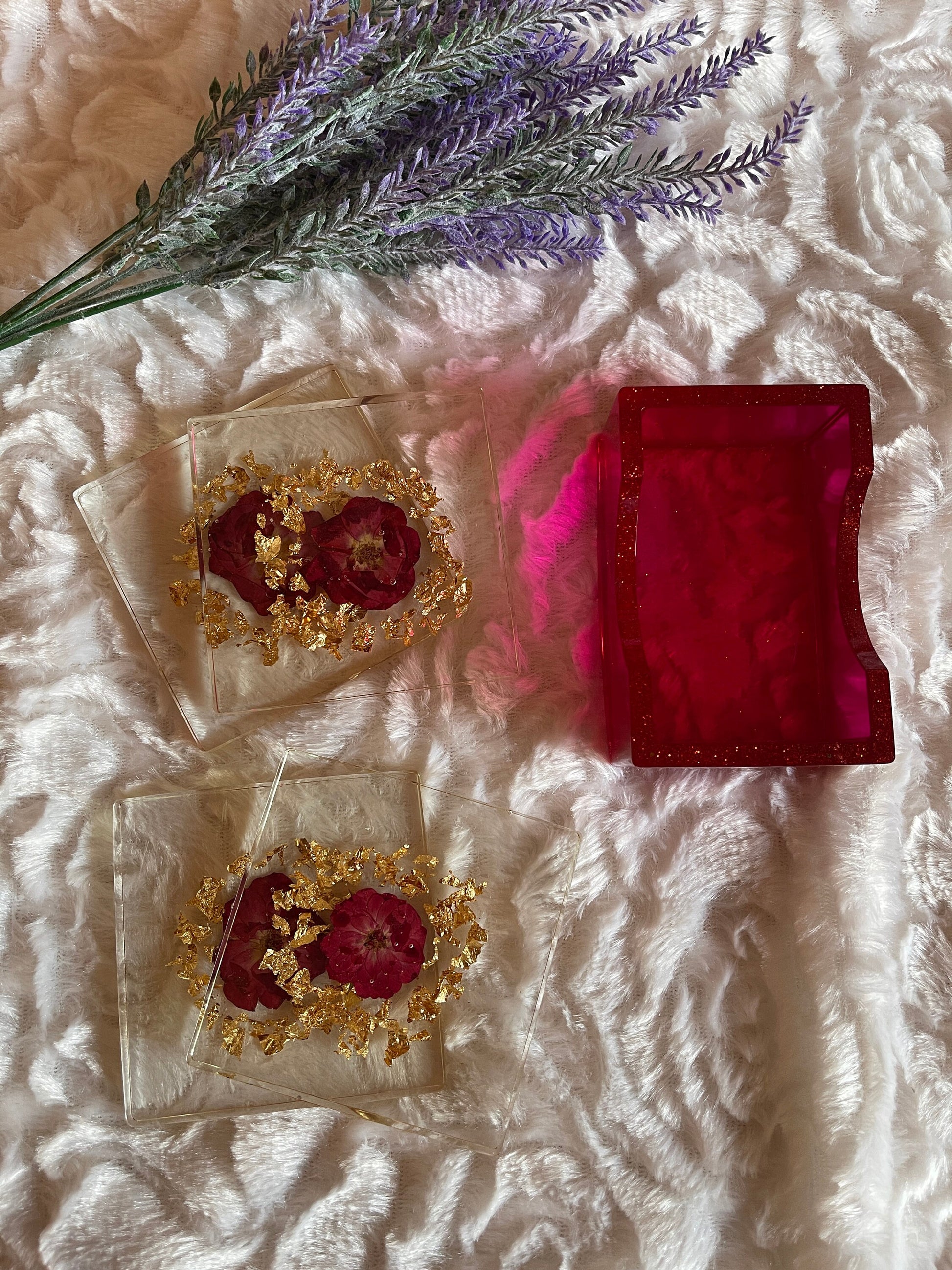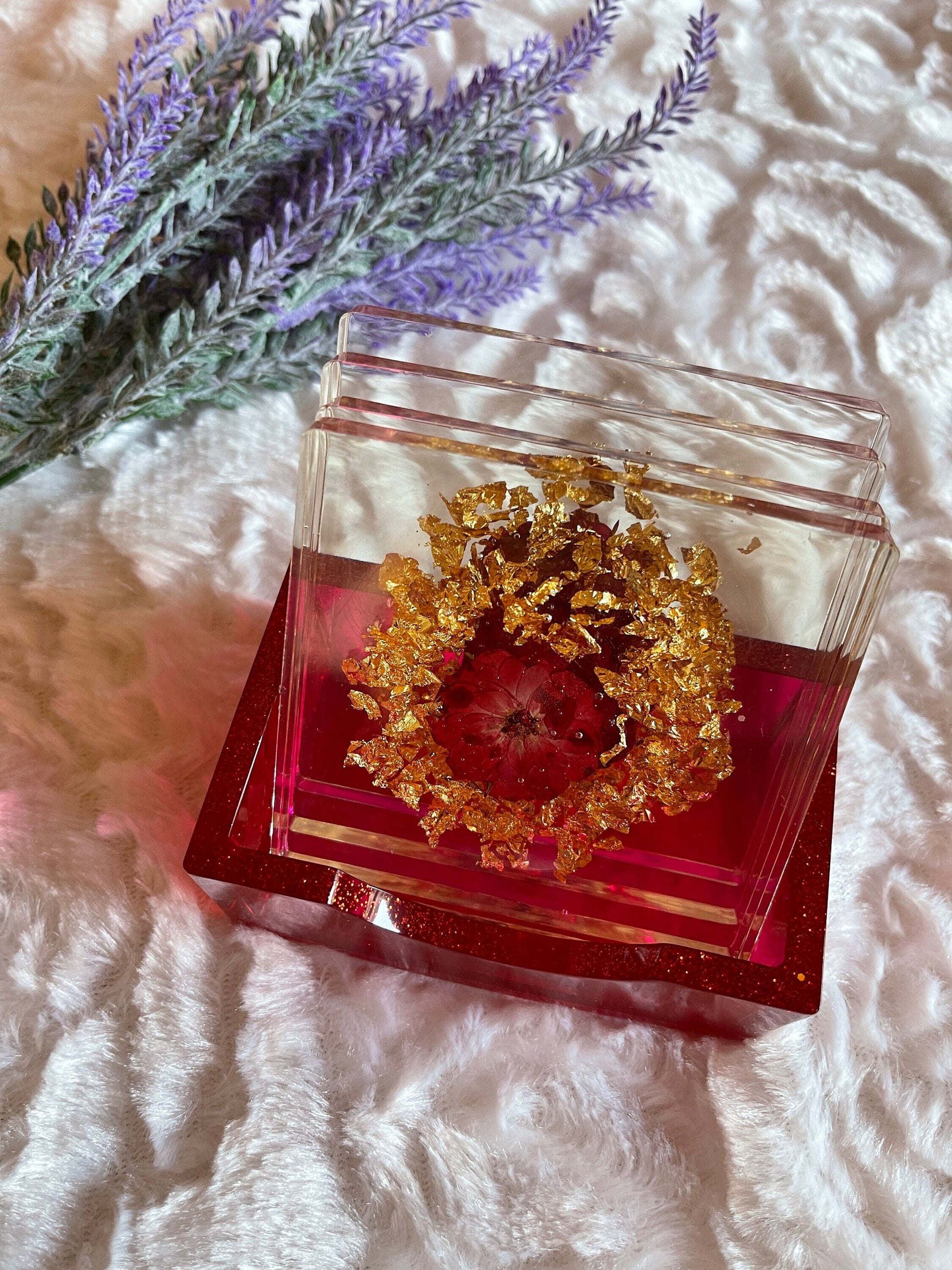 Vier glänzende Untersetzer mit Halter aus hochwertigem Epoxidharz – das perfekte Duo für deinen Couchtisch! Mit ihrer glatten, robusten Oberfläche schützen sie deine Möbel zuverlässig vor Flecken und Kratzern. Das moderne Design passt zu jedem Einrichtungsstil und macht deine Getränke zum echten Hingucker. Praktisch, langlebig und einfach zu reinigen – deine neuen Lieblingsteile für gemütliche Stunden!